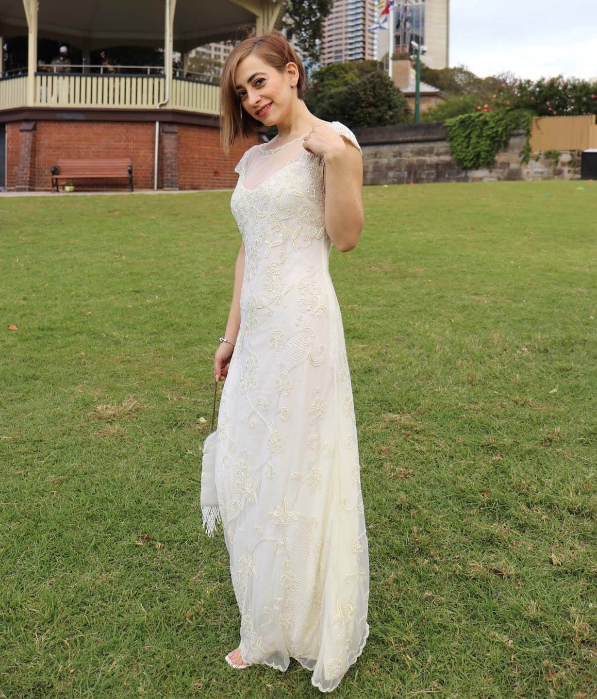 Grace, elegance and charm, all wrapped up into one wedding dress! Our Vintage Val bridal gown has a Victorian era flare to it. Boasting of hand embroidered motifs with coquette hints of skin under natural coloured net, while floating over aluxurious white satin. Flirtatious yet traditional, the modern bodice will keep you comfortable as you glide down the aisle.